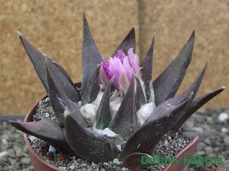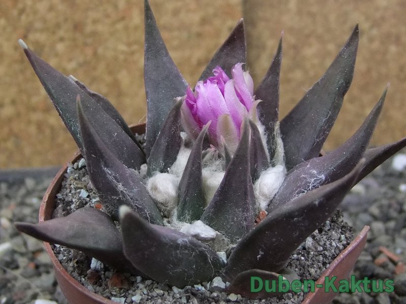 Ariocarpus confusus La Escondida, přechod trigonus - confusus. Na posledních fotografiích je porovnání s kaktusem v květináči 5,5 cm.
