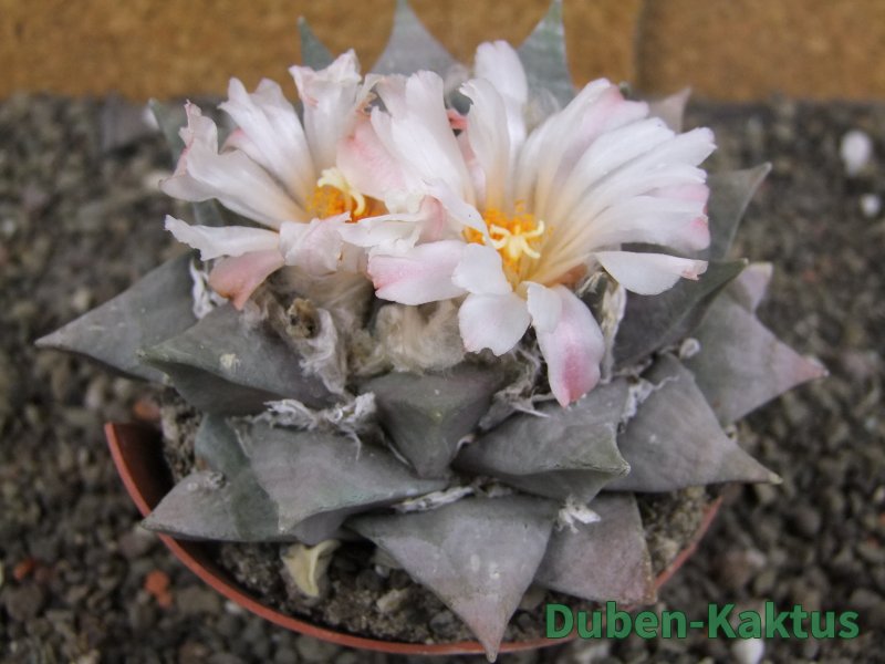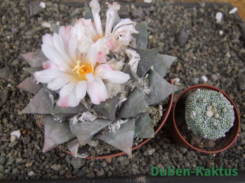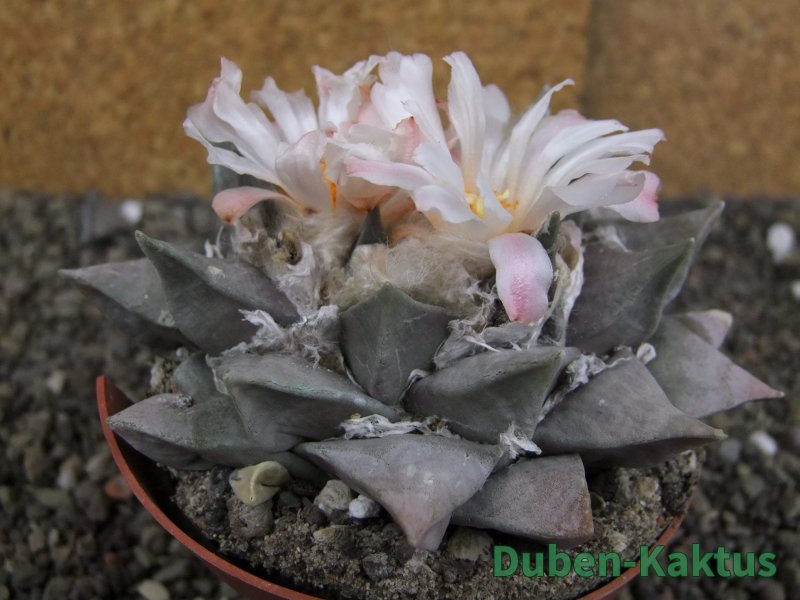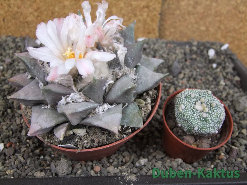 Minimálně 20 let stará sbírková rostlina. Na poslední fotografii porovnání s Ariocarpus fissuratus v květináči 5,5 cm. Výběrová kategorie Ariocarpusů. Kaktusy jsou zde foceny, evidovány a prodávány individuálně.