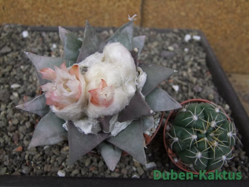 Minimálně 20 let stará sbírková rostlina. Na poslední fotografii porovnání s Ariocarpus fissuratus v květináči 5,5 cm. Výběrová kategorie Ariocarpusů. Kaktusy jsou zde foceny, evidovány a prodávány individuálně.