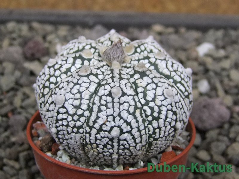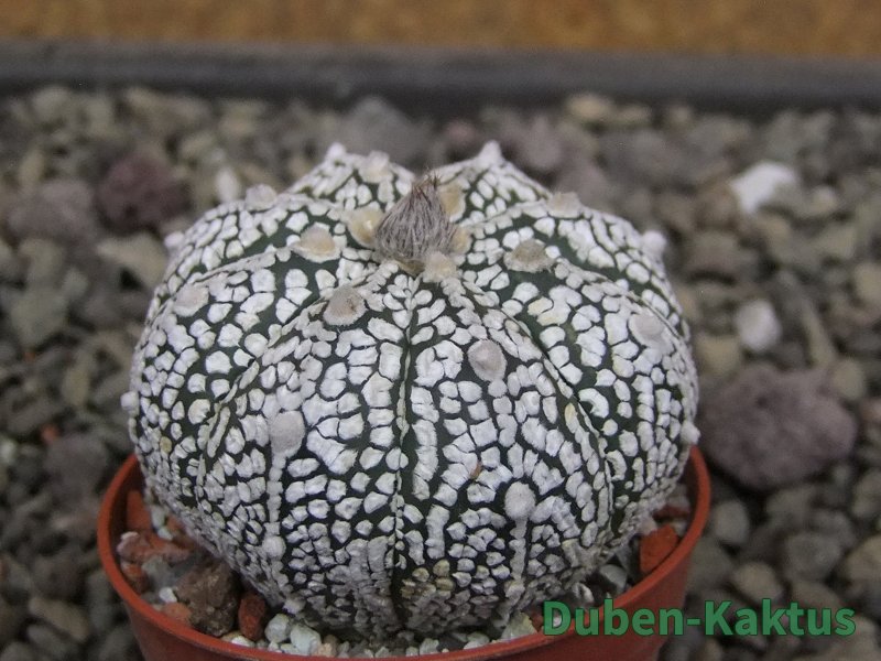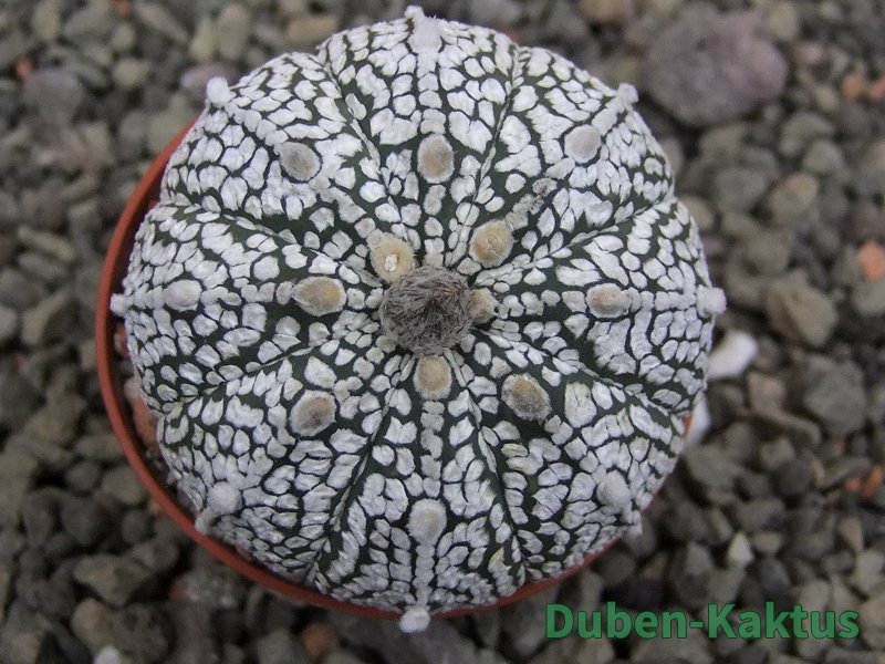 V současné době zavádíme "nové kvalitativní označení rostlin" Astrophytum z Jasenné. Je to především ulehčení naší práce a alesponˇnějaké označení rostliny. Tyto kaktusy od prvního dopadu pylu na pestík vznikly v pěstírně kaktusů Duben-kaktus. Většinou jsou to multihybridy a pokud je nějaká rostlina blíže Astrophxtum niveum nevo capricorna či asterias nebo Super Kabuuto. není lehké označit. Nebo F2 CoKabu x NivMyr 24.6.92 AU.