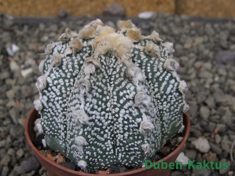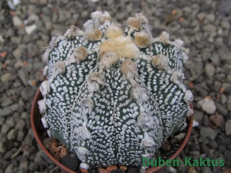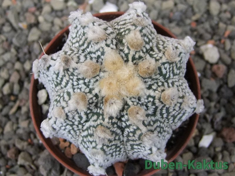 V současné době zavádíme "nové kvalitativní označení rostlin" Astrophytum z Jasenné. Je to především ulehčení naší práce a alesponˇnějaké označení rostliny. Tyto kaktusy od prvního dopadu pylu na pestík vznikly v pěstírně kaktusů Duben-kaktus. Většinou jsou to multihybridy a pokud je nějaká rostlina blíže Astrophxtum niveum nevo capricorna či asterias nebo Super Kabuuto. není lehké označit. Nebo F2 CoKabu x NivMyr 24.6.92 AU.