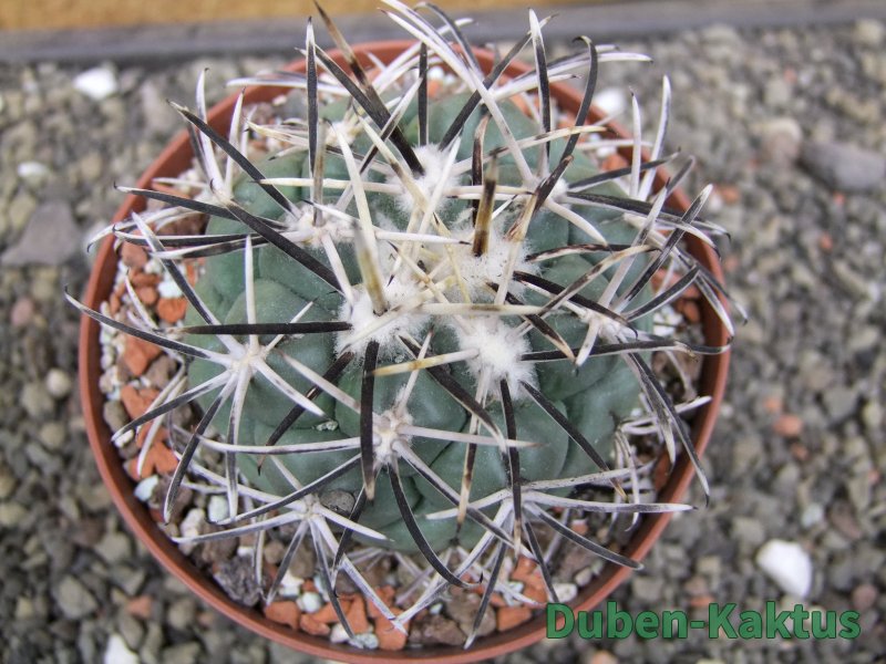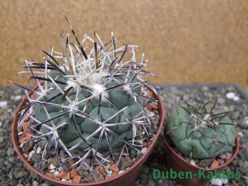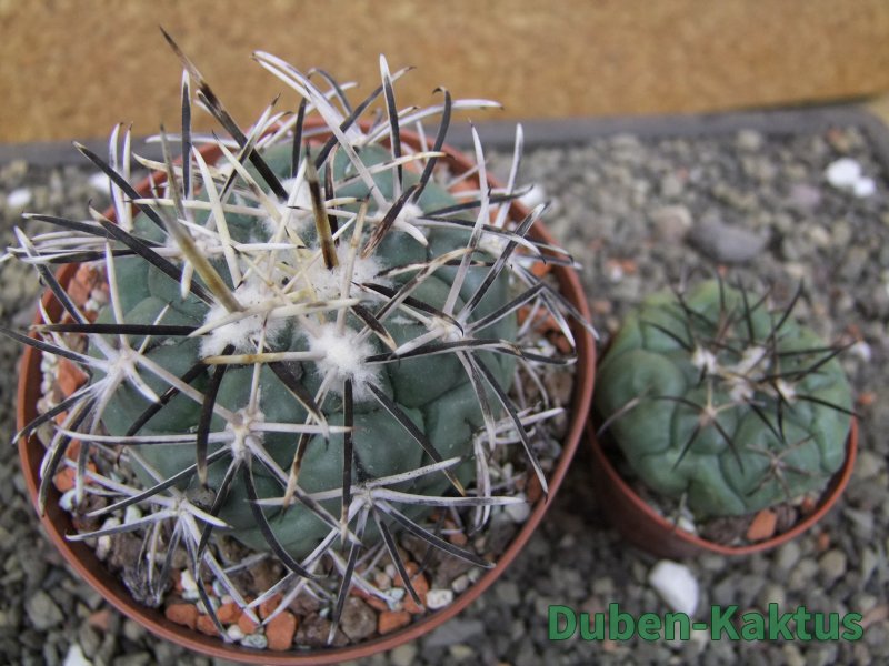 Dospělí kvetoucí semenáč Coryphantha poselgeriana valida El Hundido, podobná s Cero Bola. Na posledních fotografiích je porovnání s kaktusem v květináči 5,5 cm.