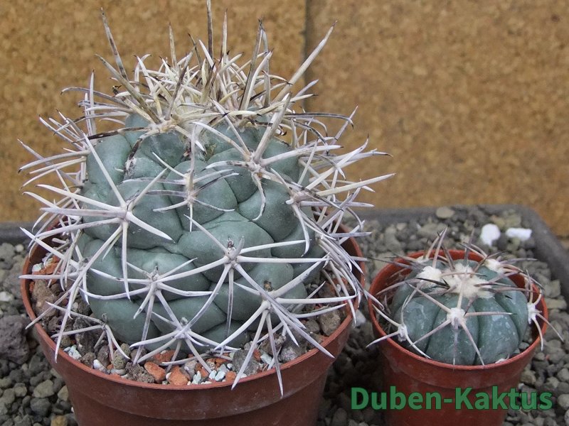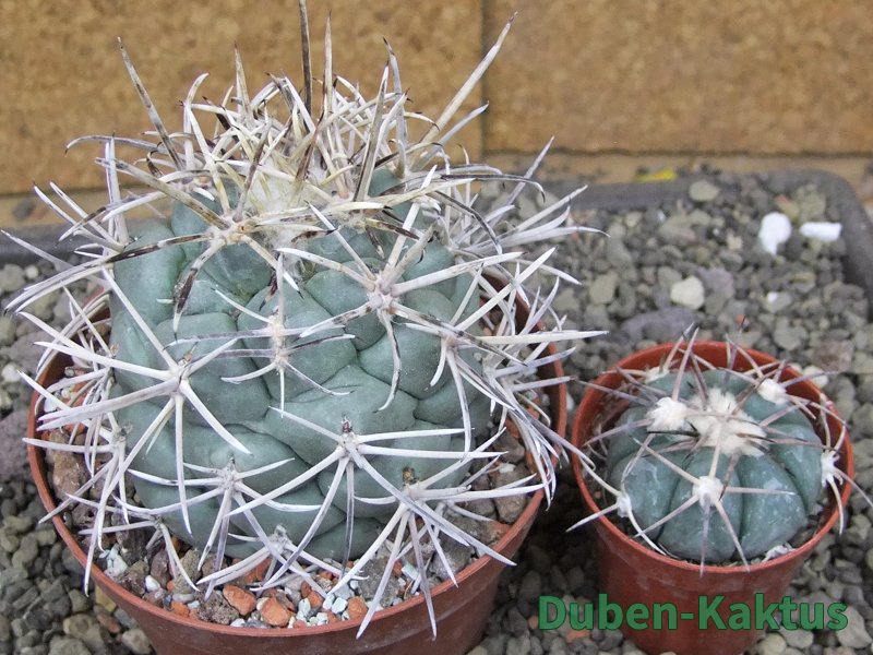 Dospělí kvetoucí semenáč Coryphantha poselgeriana valida El Hundido, podobná s Cero Bola. Na posledních fotografiích je porovnání s kaktusem v květináči 5,5 cm.