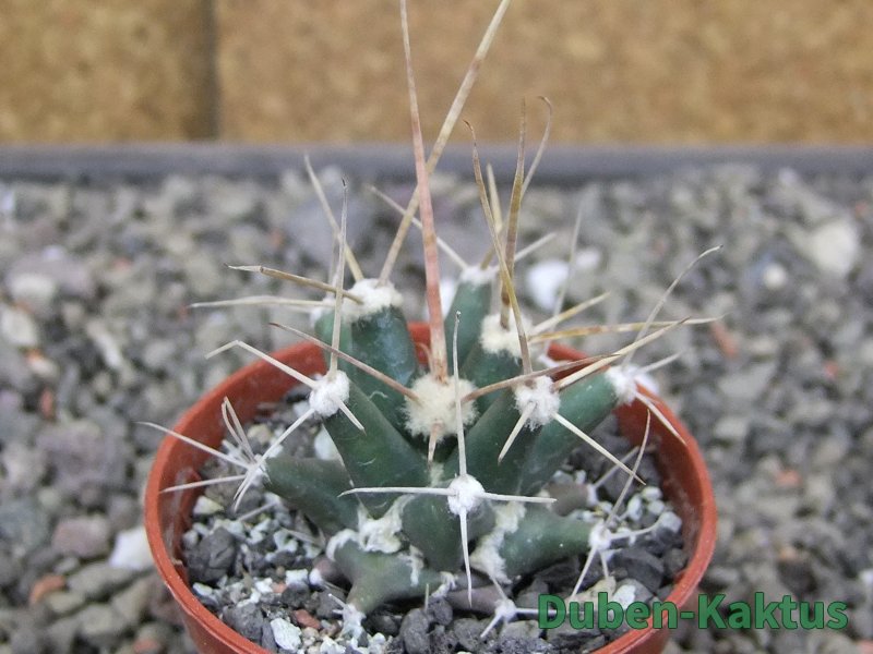 Semenáč - originální rostlina. Ferobergia - generativní hybrid Ferocactus a Leuchtenbergia principis. Vata mezi žebry není plíseň nebo škůdce. Je to přirozená součást rostliny. Pochází z rostlin Ferobergia se zajímavými květy.