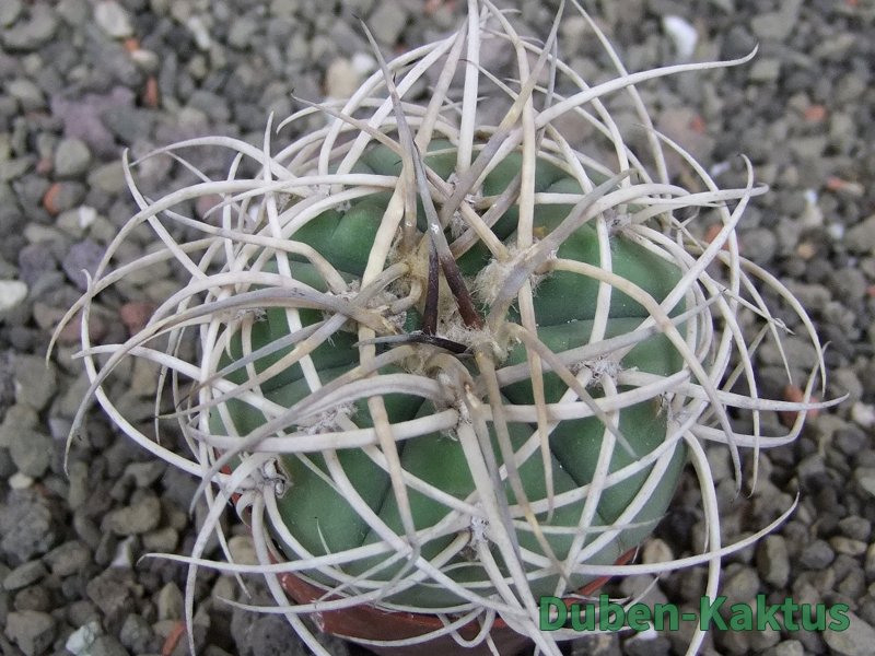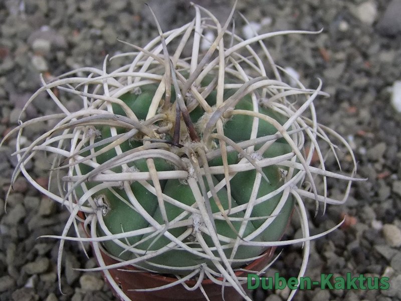 Kulturní rostlina, semenáč Gymnocalicium cardenasianum Jižně od Carrizal. Květuschopný kaktus, tvrdě pěstovaný v pěstírně kaktusů v Jasenné.