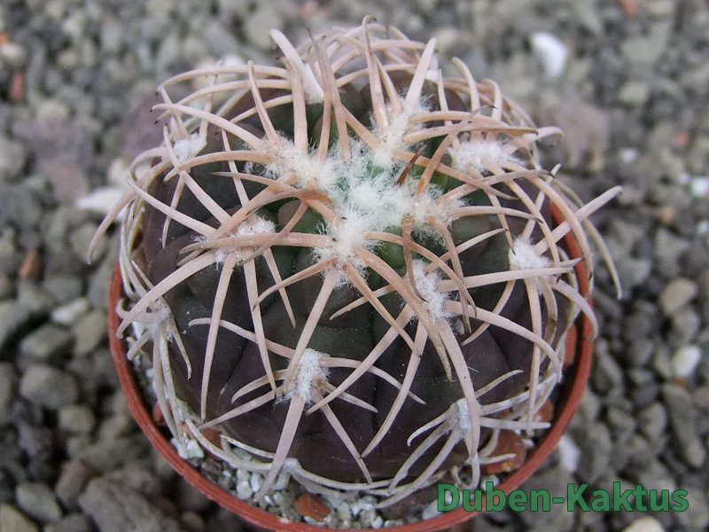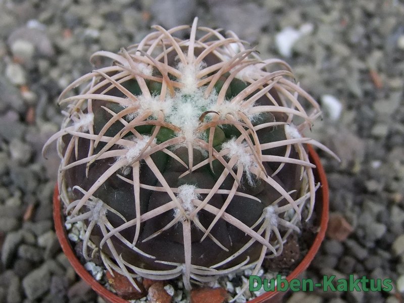 Semenáček kaktusu Gymnocalycium spegazinii. Výběrová rostlina, minimálně šest let starý kaktus.