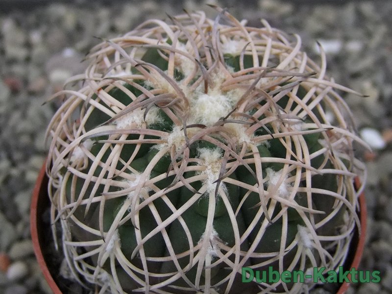 Semenáček kaktusu Gymnocalycium spegazinii. Výběrová rostlina, minimálně šest let starý kaktus.