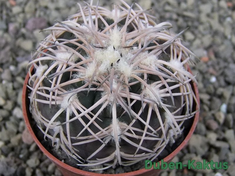 Semenáček kaktusu Gymnocalycium spegazinii. Výběrová rostlina, minimálně šest let starý kaktus.