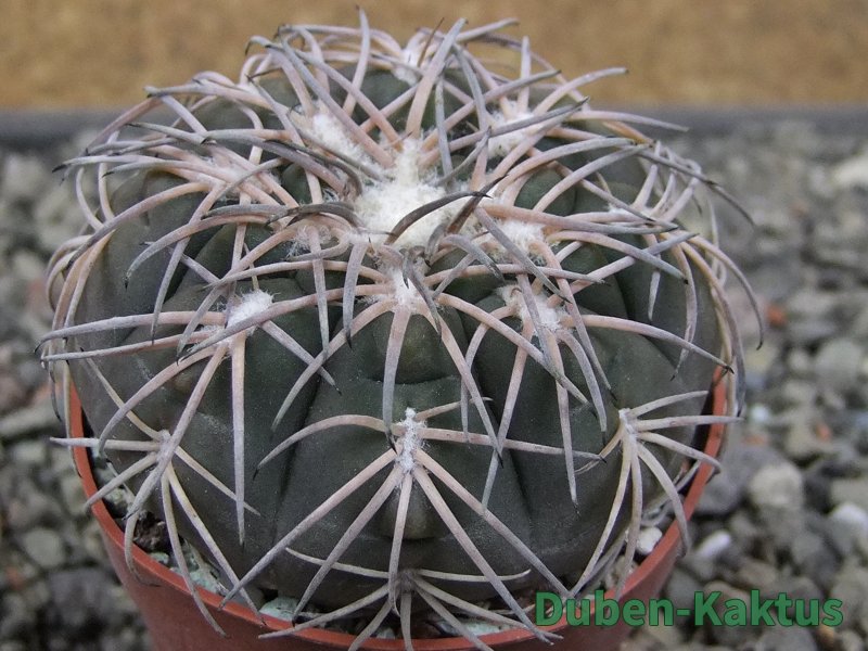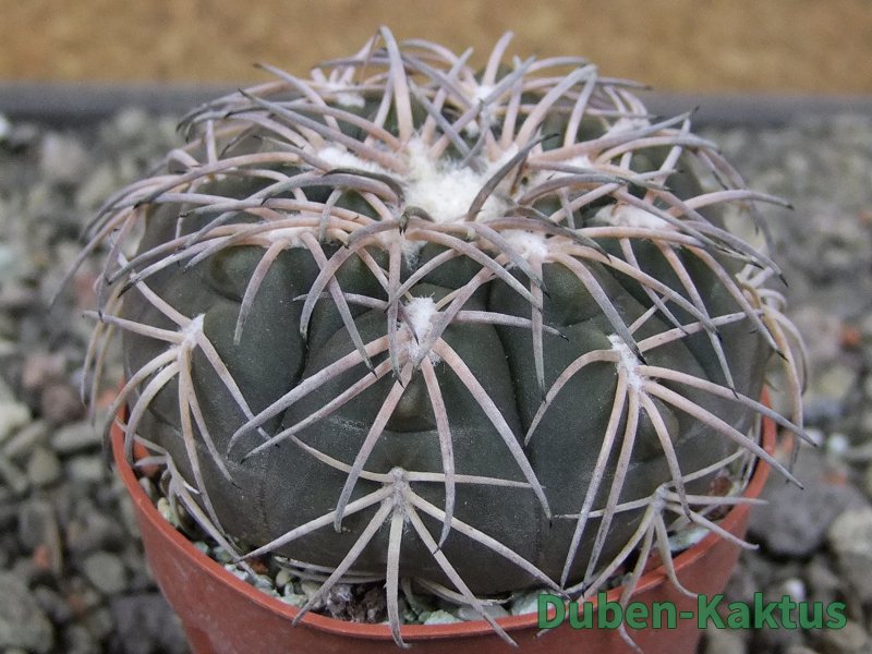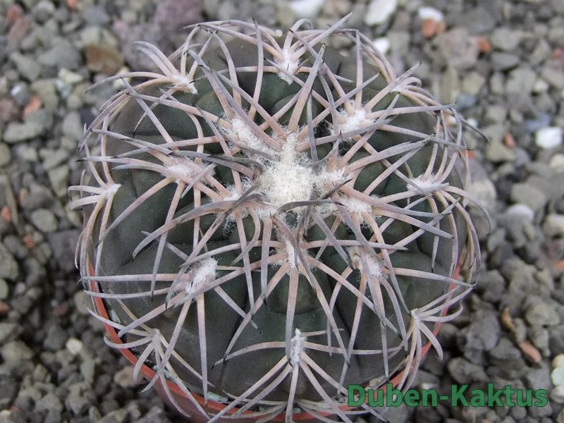 Semenáček kaktusu Gymnocalycium spegazinii. Výběrová rostlina, minimálně šest let starý kaktus.