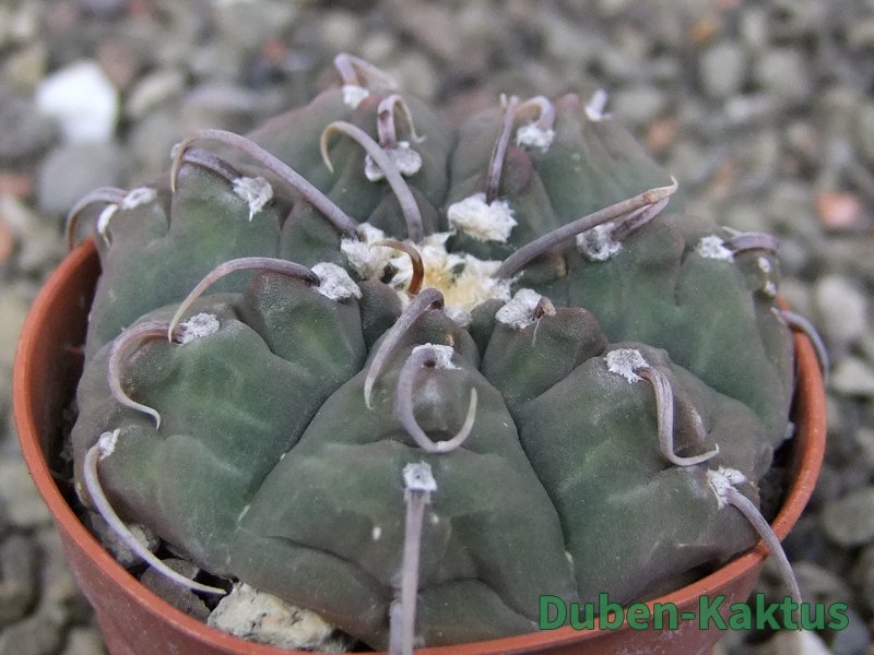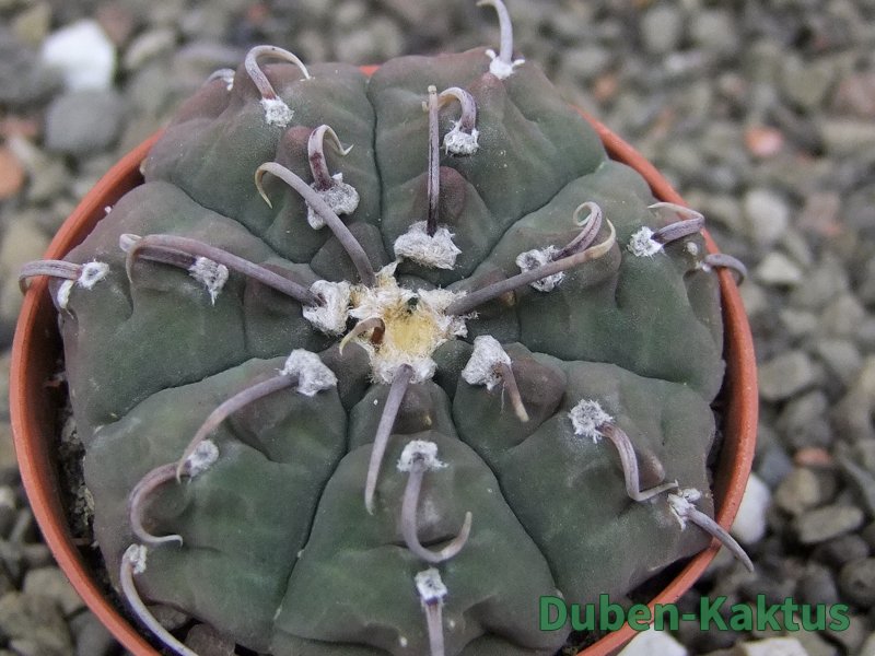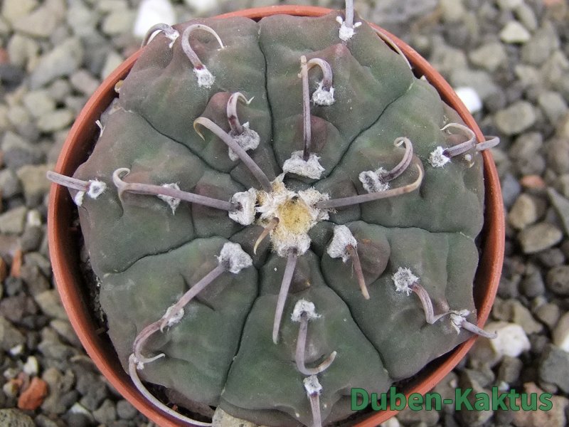 Zajímavá forma Gymnocalycium vatteri, kaktus diskovitého, plochého růstu i v dospělém věku. Pochází z drápkaté selekce.