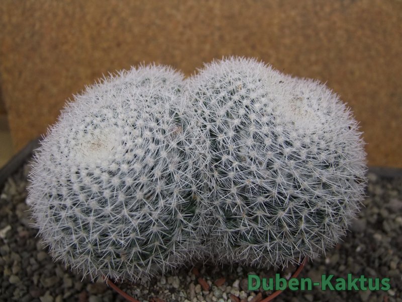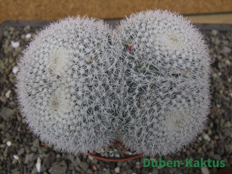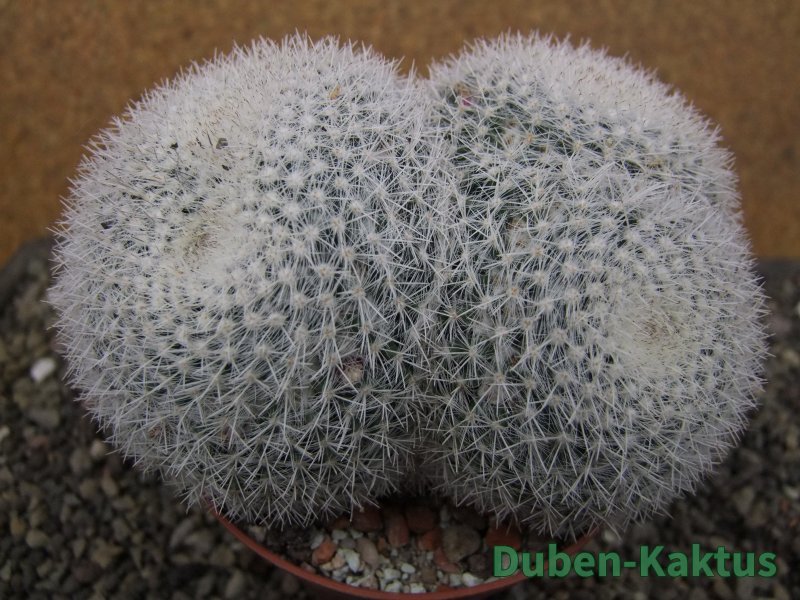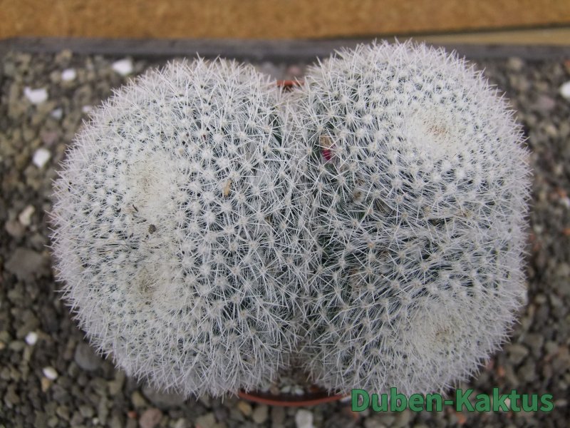 Dichotomicky se dělící Mammillaria. Kaktus v mládí roste soliterně, jednohlavě. Postupně se začíná terminál dělit jako morula. Nejedná se o cristátní nebo monstrózní formu. Je to základní tvar. Na posledních fotografiích je porovnání s kaktusem v květináči 5,5 cm.