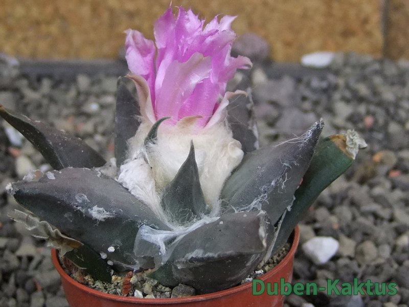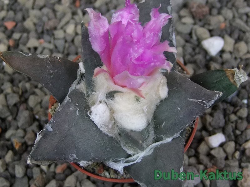 Výběrová rostlina. Na posledních fotografiích je porovnání s kaktusem v květináči 5,5 cm. Ariocarpus confusus La escondida. Poblíž La Escondida se nachází přechod k trigonusům s barvou květu od krémové po světle fialovou.   Další Ariocarpusy můžete objednat v kategorii Kaktusy standard a podkategorii Ariocarpus od 70 Kč.