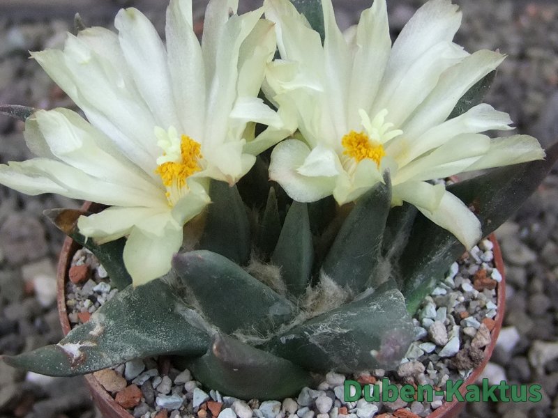 Minimálně 20 let stará rostlina. Vzrůstná forma Ariocarpus trigonus. Výběrov kategorie Ariocarpusů. Kaktusy jsou zde foceny, evidovány a prodávány individuálně. Na posledních fotografiích je porovnání s kaktusem v květináči 5,5 cm.