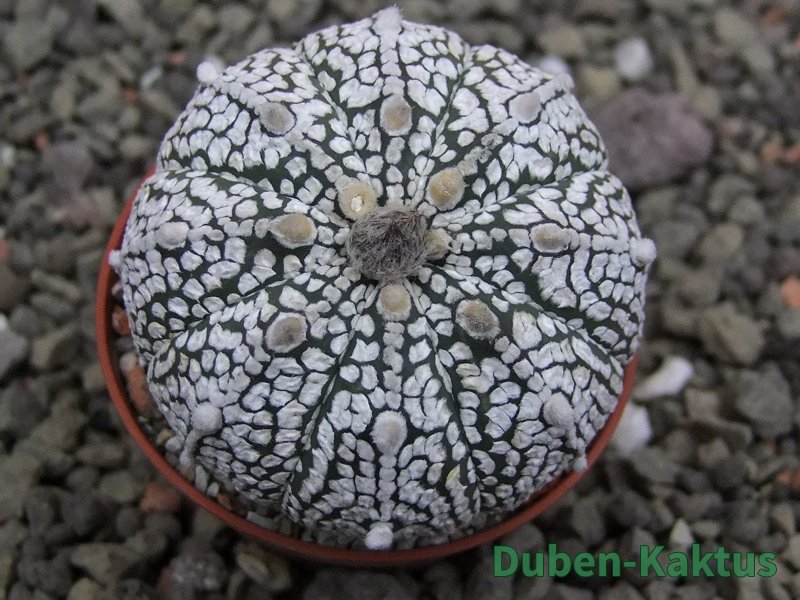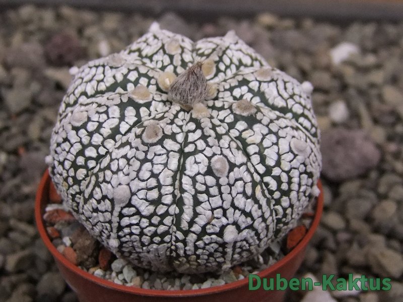 V současné době zavádíme "nové kvalitativní označení rostlin" Astrophytum z Jasenné. Je to především ulehčení naší práce a alesponˇnějaké označení rostliny. Tyto kaktusy od prvního dopadu pylu na pestík vznikly v pěstírně kaktusů Duben-kaktus. Většinou jsou to multihybridy a pokud je nějaká rostlina blíže Astrophxtum niveum nevo capricorna či asterias nebo Super Kabuuto. není lehké označit. Nebo F2 CoKabu x NivMyr 24.6.92 AU.