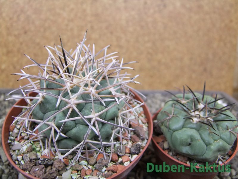 Dospělí kvetoucí semenáč Coryphantha poselgeriana valida El Hundido, podobná s Cero Bola. Na posledních fotografiích je porovnání s kaktusem v květináči 5,5 cm.
