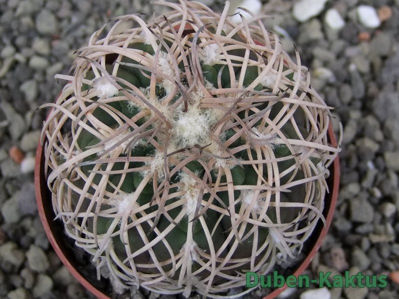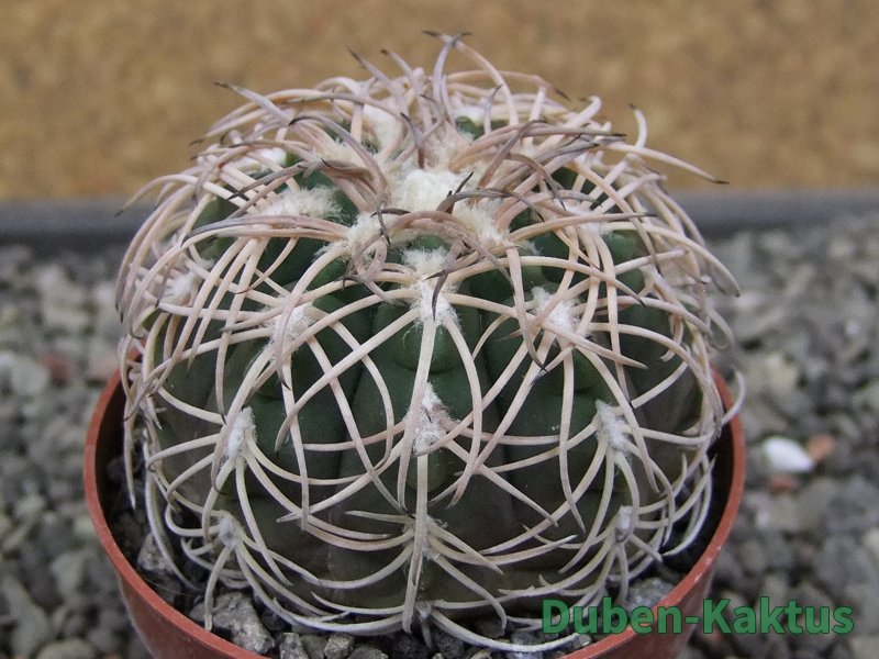 Semenáček kaktusu Gymnocalycium spegazinii. Výběrová rostlina, minimálně šest let starý kaktus.