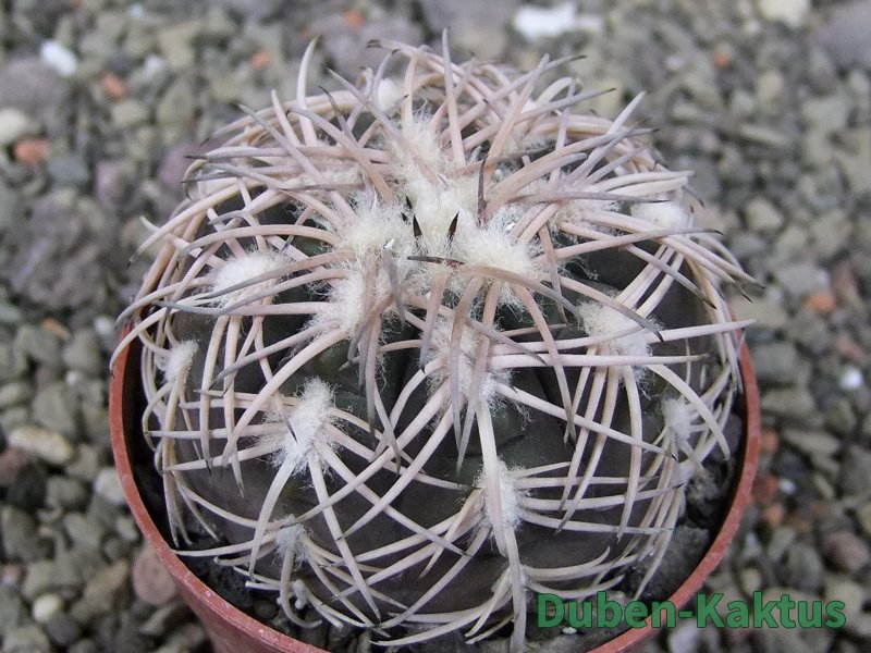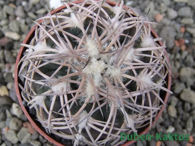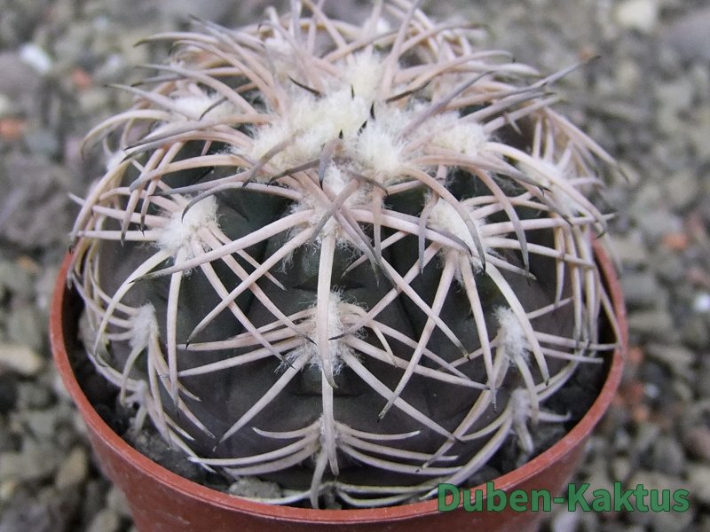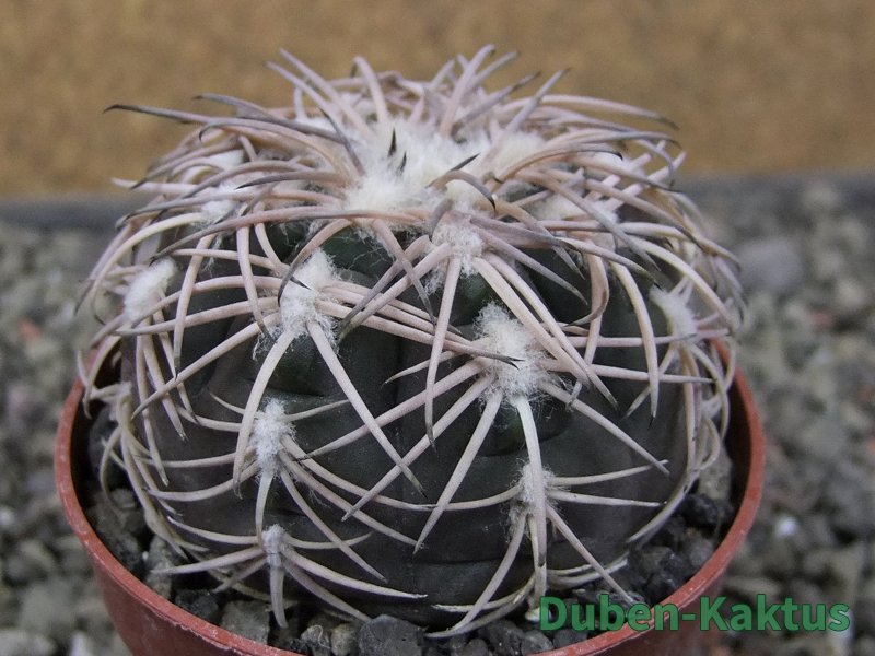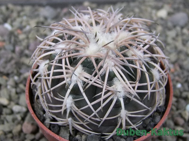 Semenáček kaktusu Gymnocalycium spegazinii. Výběrová rostlina, minimálně šest let starý kaktus.
