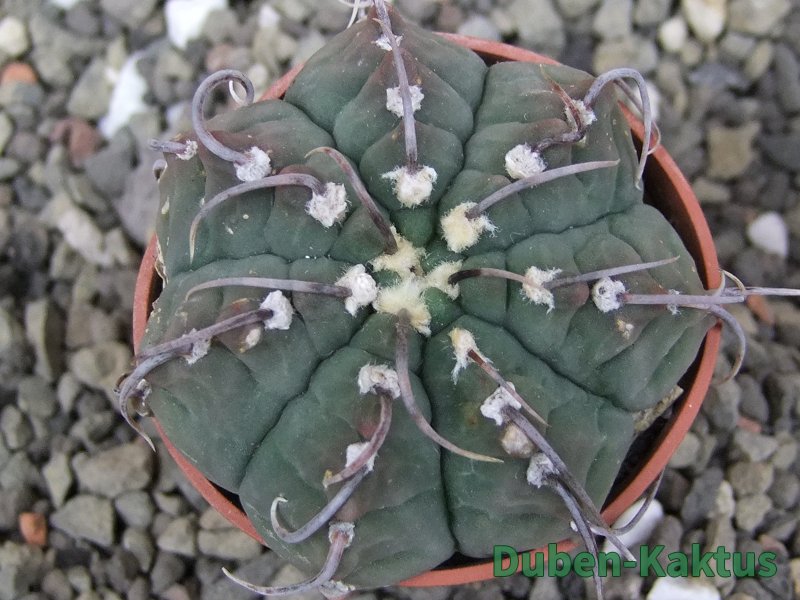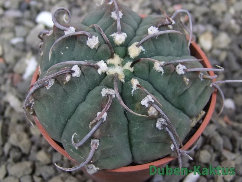 Zajímavá forma Gymnocalycium vatteri, kaktus diskovitého, plochého růstu i v dospělém věku. Pochází z drápkaté selekce.