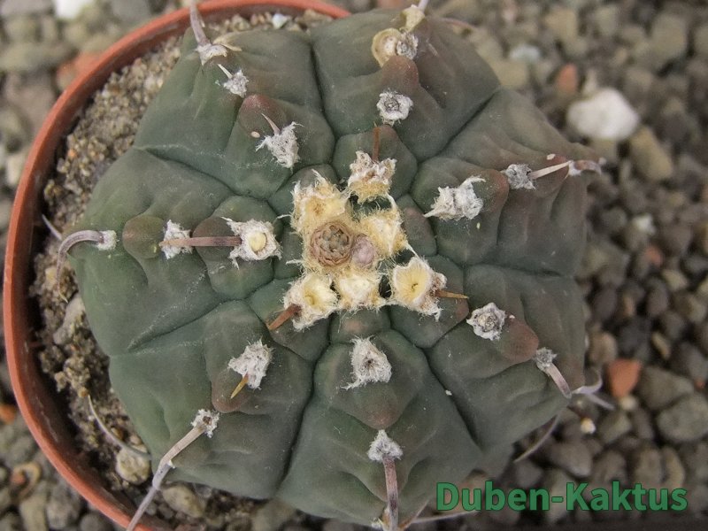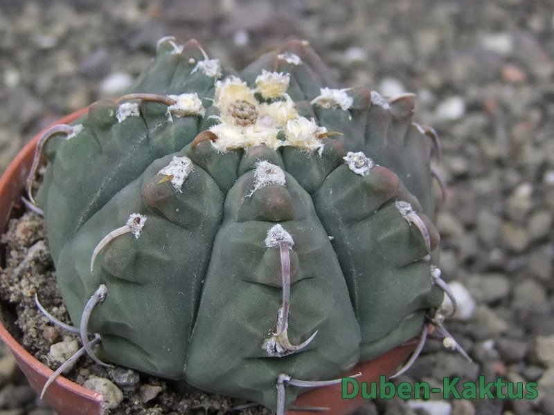 Gymnocalycium watteri unguispinum, postupnou selekcí jsme vyšlechtili Gymnocalycium s krátkými drápkatými trny. Kaktus, který zachovává diskovitý tvar i po 20 letech. Pří výsevu těchto kaktusů je 80% drápkatých rostlin.
