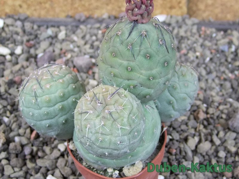 Tephrocactus geometricus se v Evropě množí většinou z odnoží. V pěstírně kaktusů Duben Kaktus množíme geometricusy přibližně ze sta klonů, v každé sadě odnoží se snažíme aby byly alespoń čtyři klony. Semen není mnoho, klíčí poměrně dobře, je však obtížné dopěstovat kaktusy - Tephrocactusy do stáří + - tři měsíce. Pokud stačí pletiva vyzrát, rostou již bez problémů.